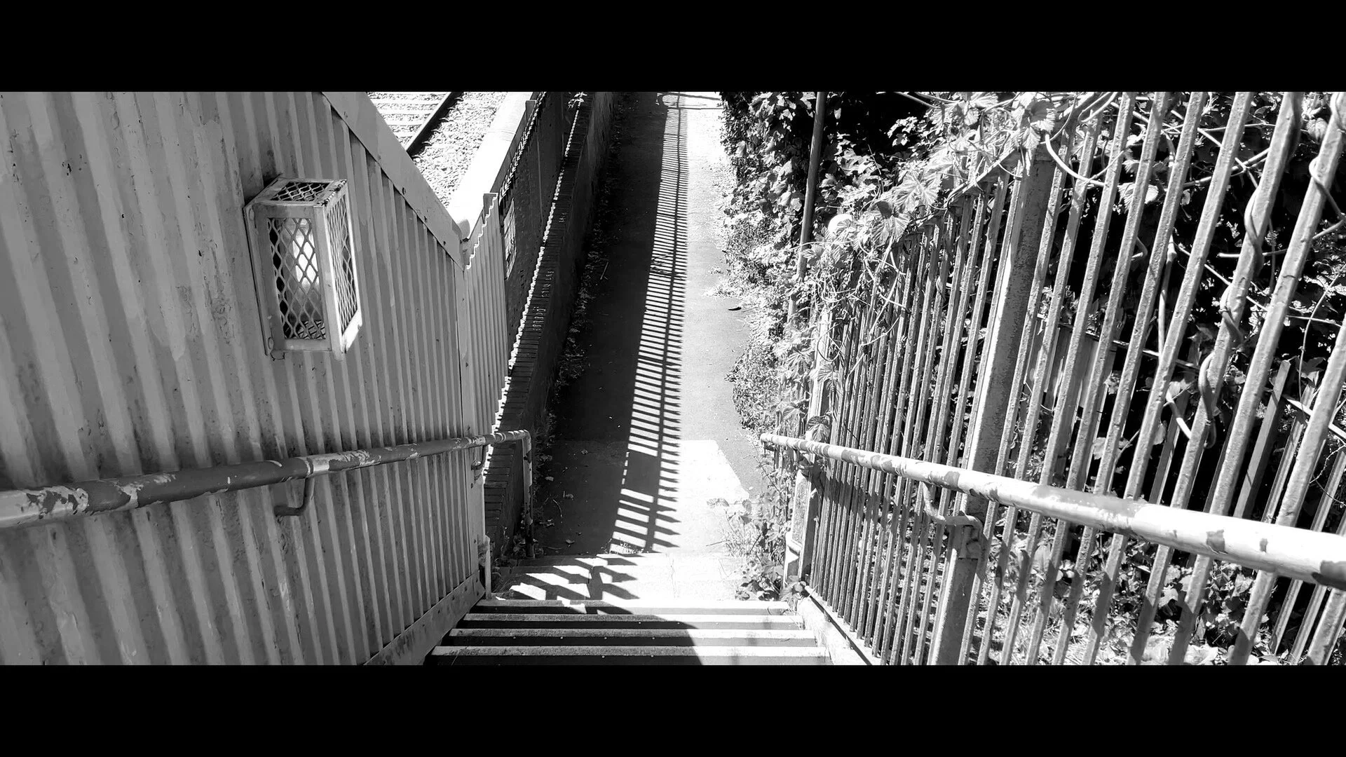 The railway bridge used in this film, with its many steps, was a place of fear when I was young, and it was the route that connects the two maps, the two journeys I mapped on the first trip back in August 2024.